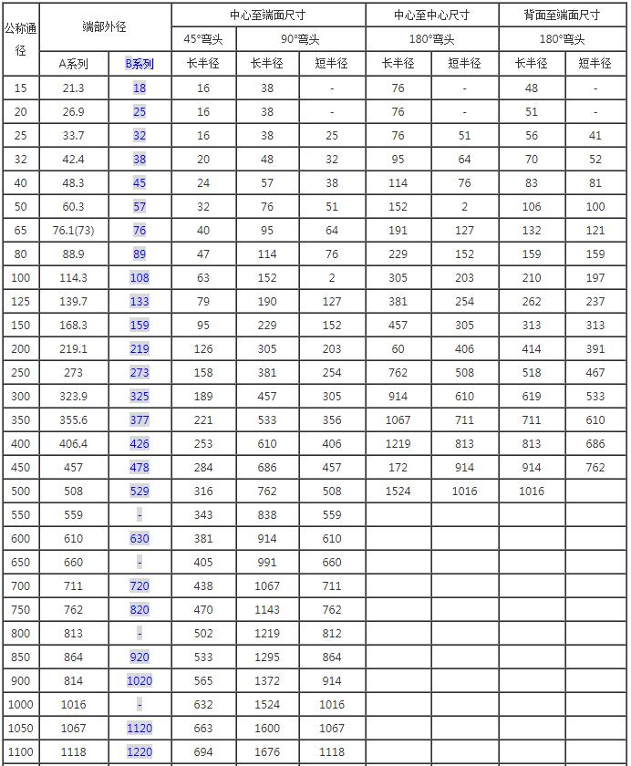 180度45度90度彎頭規(guī)格尺寸